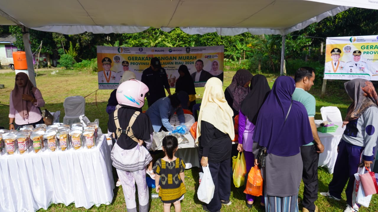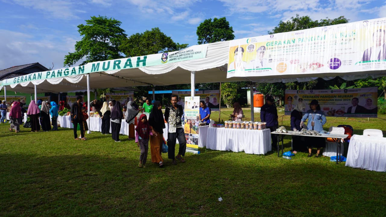 Pasar Murah yang sedang berlangsung s.d pukul 12.00 siang ini, diselenggarakan secara kolaboratif dibawah koordinasi Dinas Ketahanan Pangan, Pertanian dan Kesehatan Hewan (DP2KH) Prov. Kepri dalam rangka Gerakan Pangan Murah Prov. Kepri yang bertujuan untuk menghadirkan sembako dan komoditas perikanan murah bagi masyarakat kecil sebagai bagian dari upaya pengendalian inflasi.